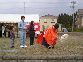 刈初の儀(かりそめのぎ)設計者が鎌で草に見立てた笹を刈りとります。 |
